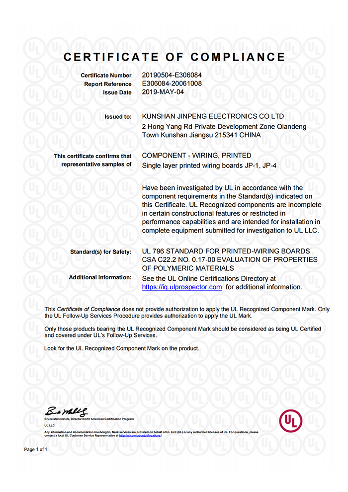 昆山金鵬電子有限公司是一家擁有20余年印制電路板(PCB)制造經(jīng)驗(yàn)的高新技術(shù)公司,公司成立于2002年,注冊(cè)資本1.2億元,占地面積66000平米,建筑面積35000平米,現(xiàn)有員工500余人。公司已通過(guò)ISO14001環(huán)境管理體系認(rèn)證、ISO9001及IATF16949質(zhì)量管理體系認(rèn)證,PCB及PCBA產(chǎn)品均已通過(guò)CQC認(rèn)證、美國(guó)UL認(rèn)證及歐盟RoHS認(rèn)證。2020年銷(xiāo)售收入5.1億元,已具相當(dāng)規(guī)模,在昆山PCB制造行業(yè)排名位居前列。